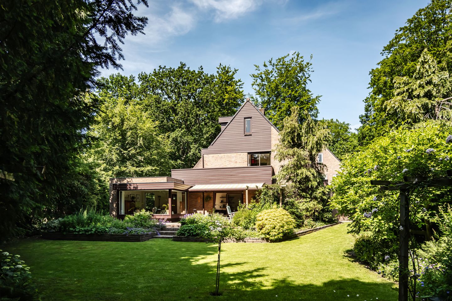 Verscholen in het groen en met een royale oprit ligt deze charmante, halfvrijstaande villa – een heerlijk (familie)huis met een verrassend speelse indeling, volop leefruimte en een unieke ligging op één van de mooiste plekken van Aerdenhout. De sfeervolle living met open haard is ruim opgezet en biedt een directe verbinding met het uitgebouwde eetgedeelte – perfect als eetkamer, werkplek of speelruimte. Grote raampartijen en diepe vensterbanken zorgen voor een prachtig uitzicht over de achtertuin van maar liefst 30 meter diep. Dankzij de ligging is er op elk moment van de dag een plekje in de zon of in de schaduw te vinden, zowel op het grote terras als op het gazon. De keuken bevindt zich aan de voorzijde van de woning en grenst aan een tweede eetkamer met schuifdeuren naar de voortuin. Op de begane grond bevindt zich bovendien een ruime slaapkamer met badkamer en-suite en directe toegang tot de zijtuin – ideaal voor levensloopbestendig wonen. Op de verdieping zijn nog eens 5 goede slaapkamers en een tweede badkamer aanwezig. Er is tevens een aangebouwde garage (ca. 27 m²) en meerdere parkeerplaatsen op eigen terrein.
