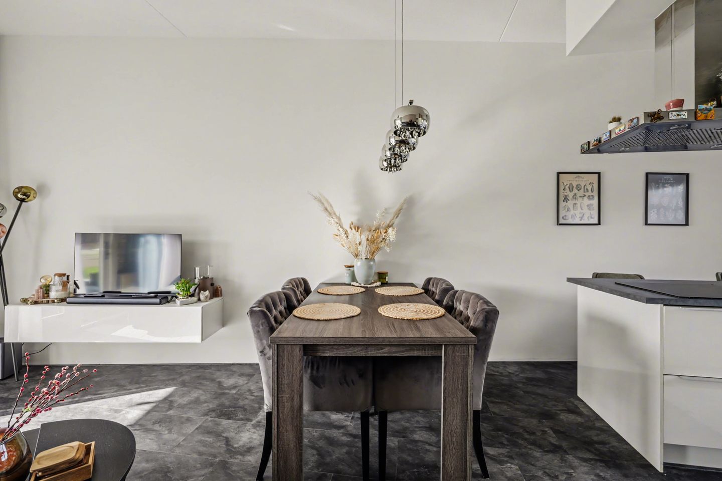 De open keuken sluit naadloos aan op de woonkamer en is modern uitgevoerd. De keuken beschikt over diverse inbouwapparatuur, waaronder een 4-pits inductiekookplaat, vaatwasser, koel-vriescombinatie en een combi-oven/magnetron. Naast de keuken is voldoende ruimte voor een gezellige eethoek waar je comfortabel kunt tafelen.