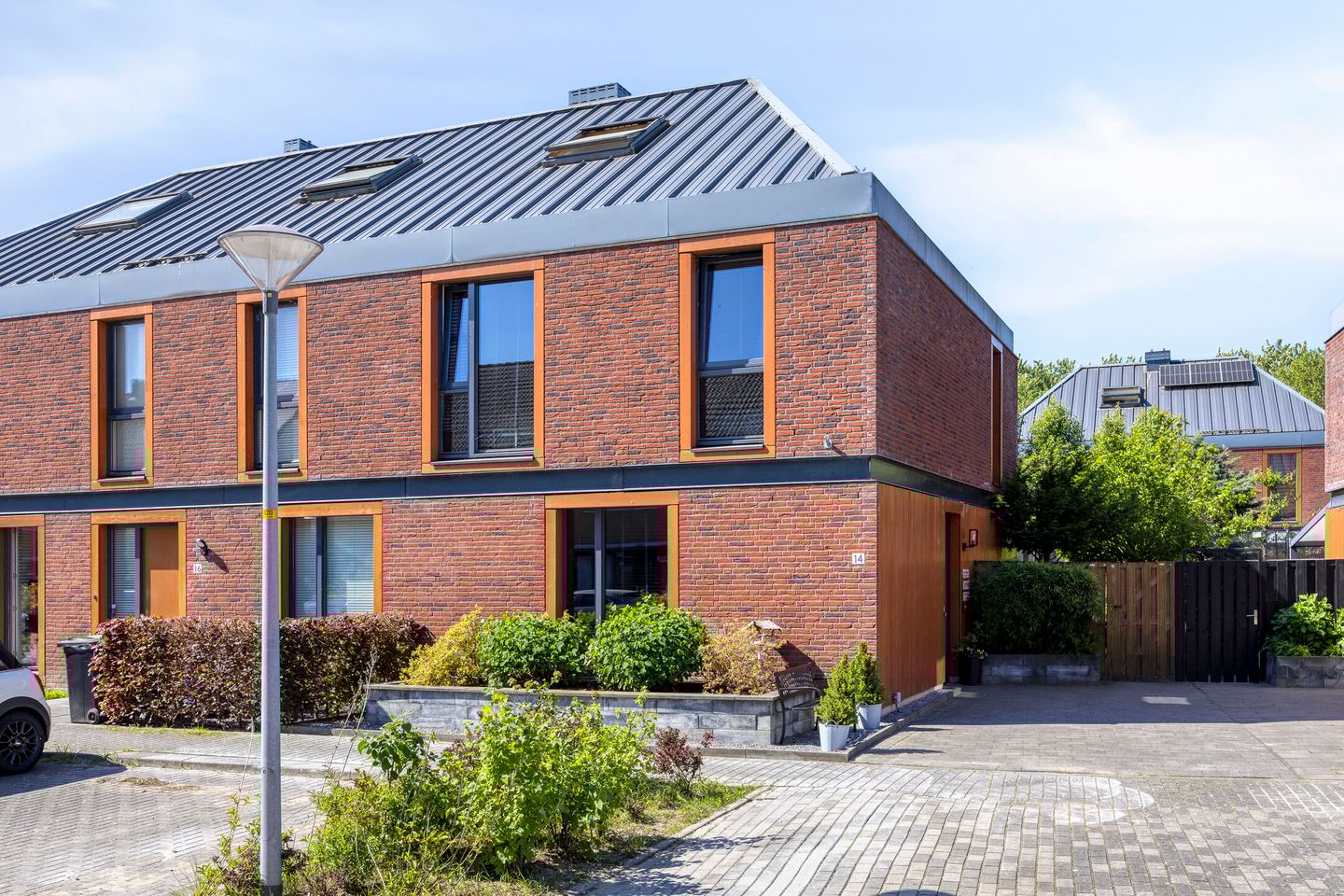 Deze in 2009 gebouwde woning combineert een eigentijdse uitstraling – met rode baksteen en een karakteristieke donkere schildkap bekleed met zink – met het comfort en de efficiëntie van vandaag. De woning is onderdeel van een kleinschalig blok van drie, waarbij deze hoekwoning profiteert van extra ruimte, een eigen parkeerplaats én een extra parkeerplek op gemeentegrond aan de inrit.