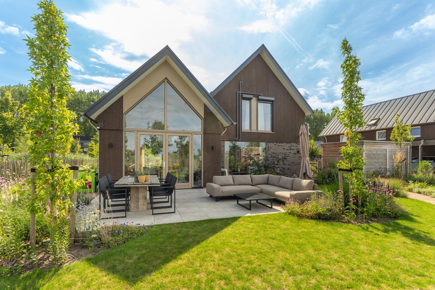 - Fraai aangelegde tuin met veel groen en verschillende terrassen
