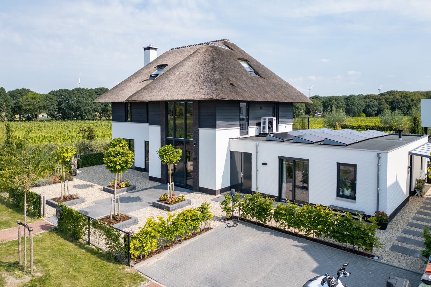 In een rustige, groene omgeving vindt u deze schitterende, luxe villa met riet gedekte kap. Deze unieke woning combineert stijl, comfort en functionaliteit op een hoog niveau. Met een royale leefruimte en een aangebouwde zorgwoning is dit een perfect voorbeeld van een moderne kangoeroewoning, ideaal voor dubbele bewoning of het zorgen voor naasten, met behoud van privacy voor iedereen.