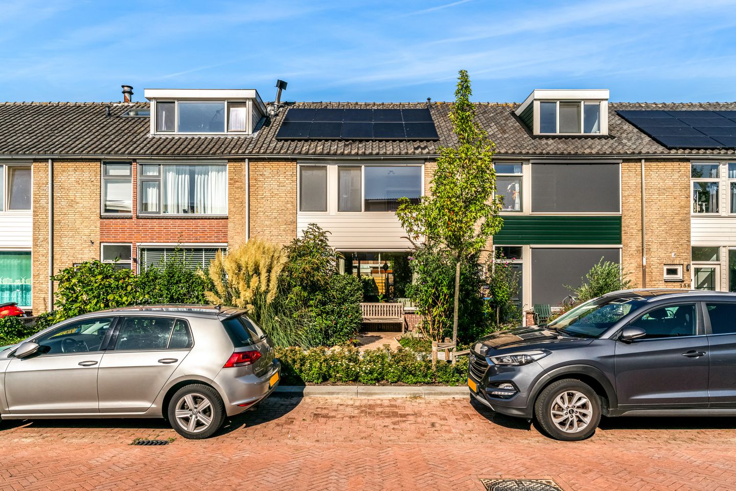 De onderhoudsvriendelijke tuin is groen en gezellig, voorzien van fruitbomen, bessenstruiken en druiven. Dankzij de ligging op het noordwesten is er volop middag- en avondzon, ideaal om na het werk nog lekker buiten te genieten.