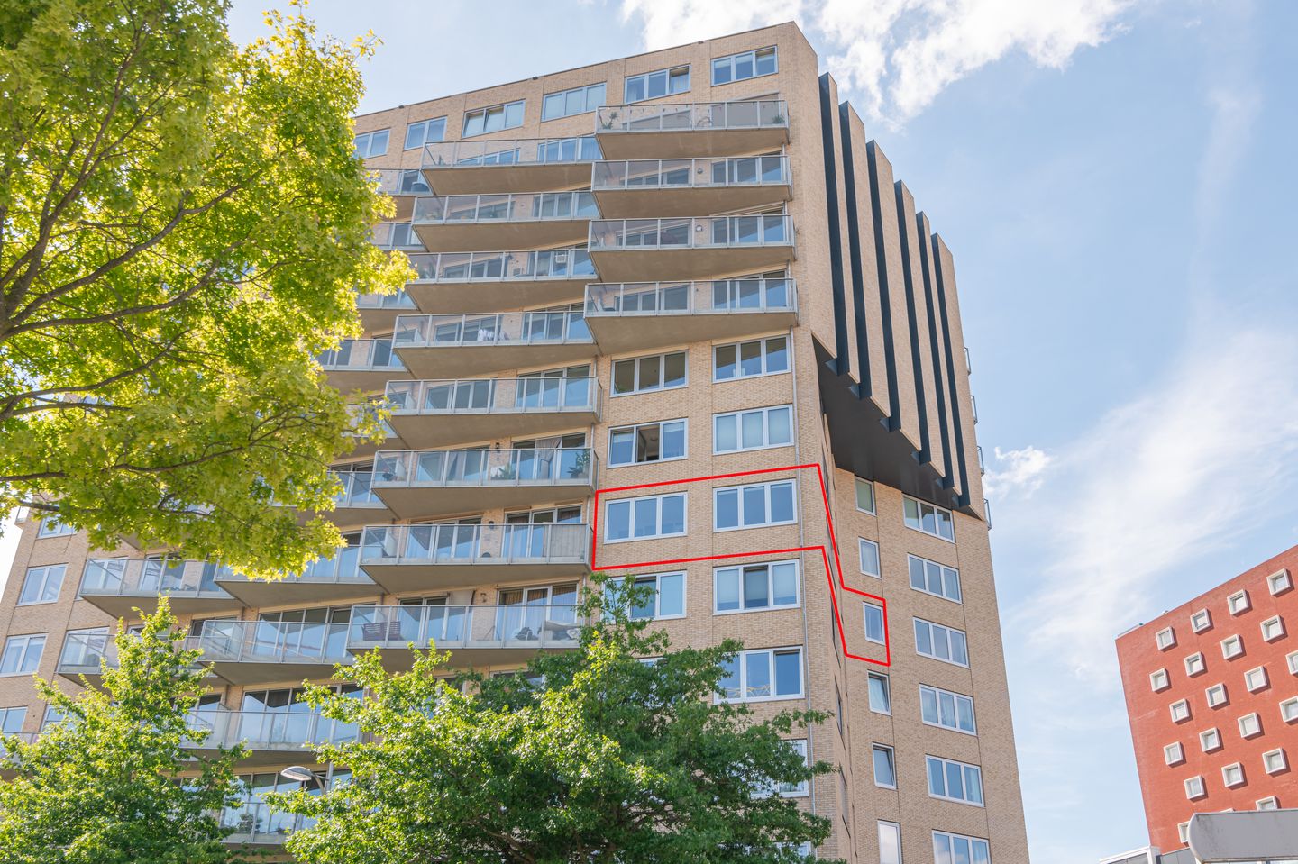 Subliem gelegen driekamer appartement met spectaculair uitzicht op 6e verdieping van "Fourty5High" met loggia, eigen parkeerplaats en berging, recht tegenover het nieuwe Eemplein. Je kijkt vanuit de woning mooi langs en over het nieuwe gemeentehuis zodat je vol uitzicht hebt op de sky-line / oude torens van het historische stadscentrum. Kortom, ‘Thé place to be’ voor de echte 'Cosmopolitan' die zich jong voelt en van stijl, comfort en sfeer houdt. De oplevering vond plaats in 2014.