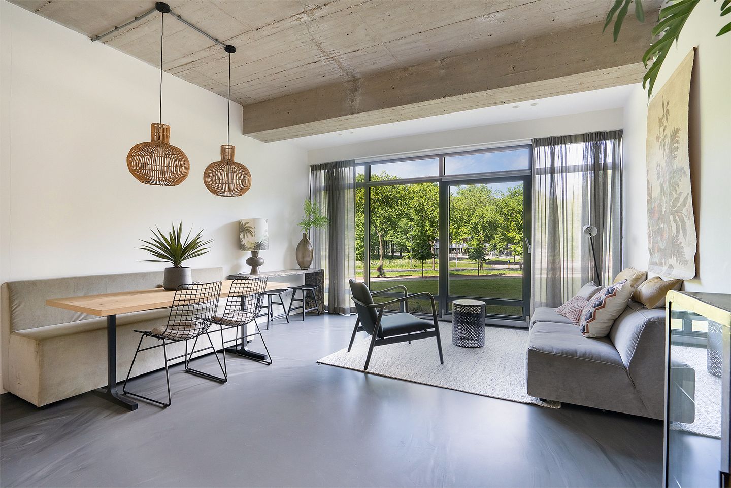 De gehele woning is afgewerkt met een gietvloer voorzien van vloerverwarming.