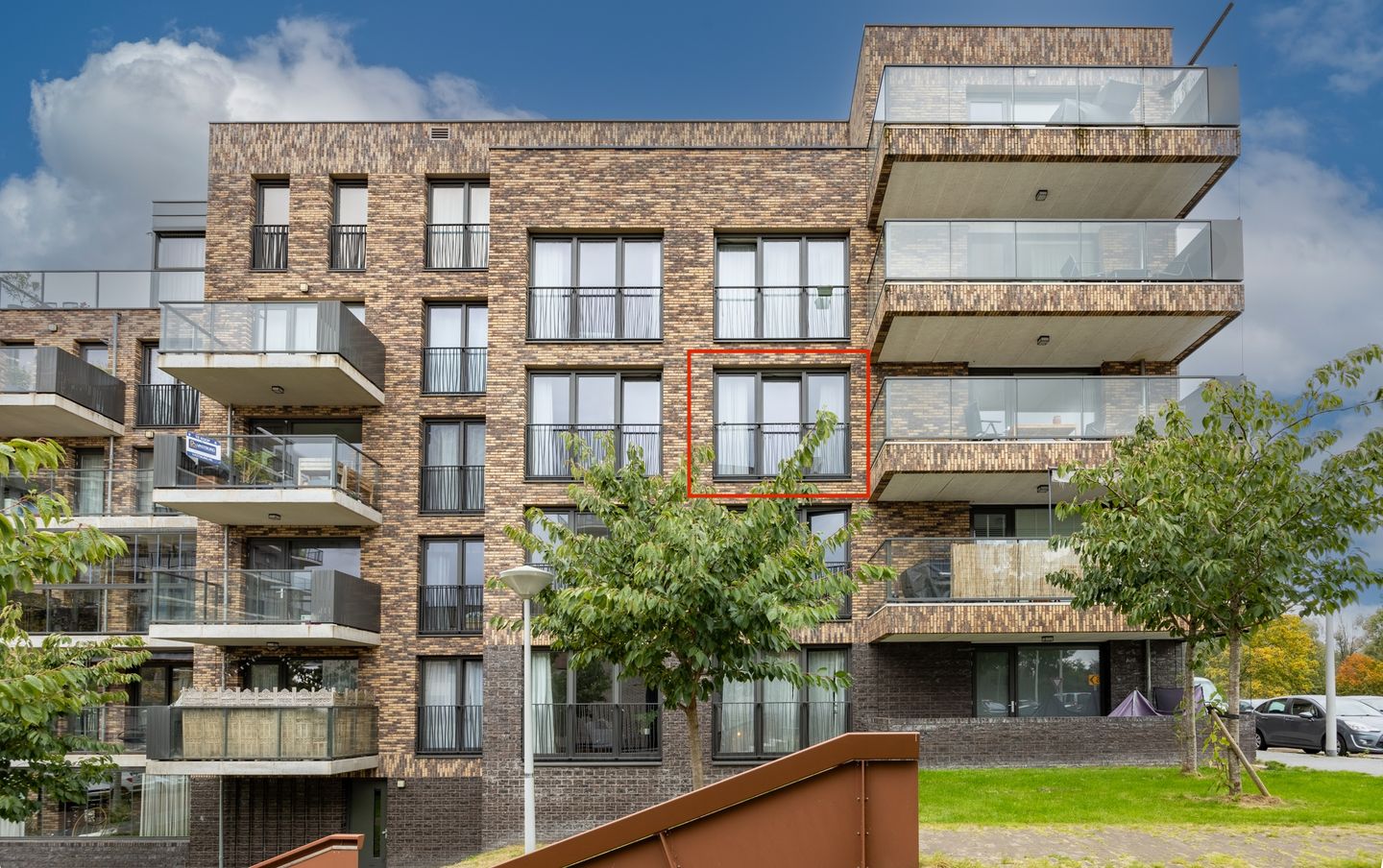 Entree tot de woning. Aan de achterzijde van het appartement bevindt zich de ruime woonkamer met genoeg ruimte voor een zit- en eetgedeelte. De woonkamer is heerlijk licht door de vrijwel kamerbrede, van grond tot plafond reikende glazen pui. De gehele pui kan worden open gezet, zodat je op een zonnige dag een stukje van het mooie weer naar binnen haalt. Een roomdivider zorgt verder voor een handige afscheiding tussen het woon- en slaapgedeelte. De moderne open keuken is uitgevoerd in rechte keukenopstelling en beschikt over diverse inbouwapparatuur, waaronder: 4-pits inductiekookplaat, combioven, vaatwasser, koelkast met vriesvak en afzuigkap. De ruime moderne badkamer is uitgerust met een inloopdouche, wandcloset, wastafel, handdoekradiator en tijdloos tegelwerk tot het plafond. Naast de badkamer ligt nog een handige inpandige berg- /wasruimte met een aansluiting voor een wasmachine. Ten slotte bevindt zich links naast de voordeur nog de meterkast en de opstelling voor de stadsverwarmingsunit.