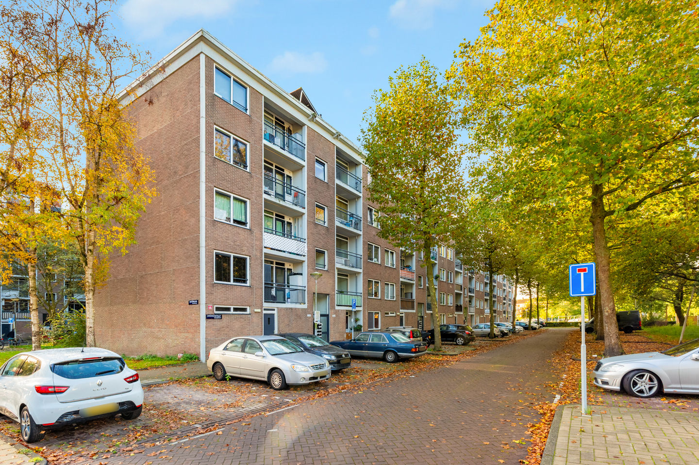 Aan het einde van de rustige straat is de entree van huisnummer 37 t/m 45. Hier zie je brievenbussen, het bellentableau en de intercom. Eenmaal binnen loop je naar de voordeur van dit appartement, zonder een trap te hoeven gebruiken.