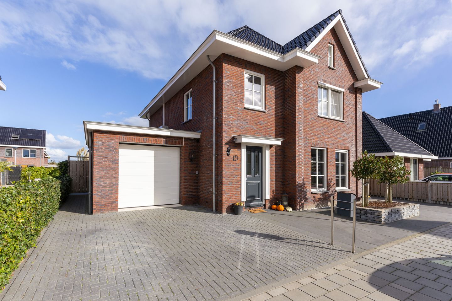 Wat heerlijk om hier buiten te zijn! Zonnig, overzichtelijk en ruimtelijk. Een keurig gazon, keurig straatwerk, terrassen, beplanting, een berging en een overkapping om alle seizoenen heerlijk onder te vertoeven. Aan een zijde van de woning een poort en aan de andere zijde brede openslaande poortdeuren. Maximaal genieten van het buitenleven!