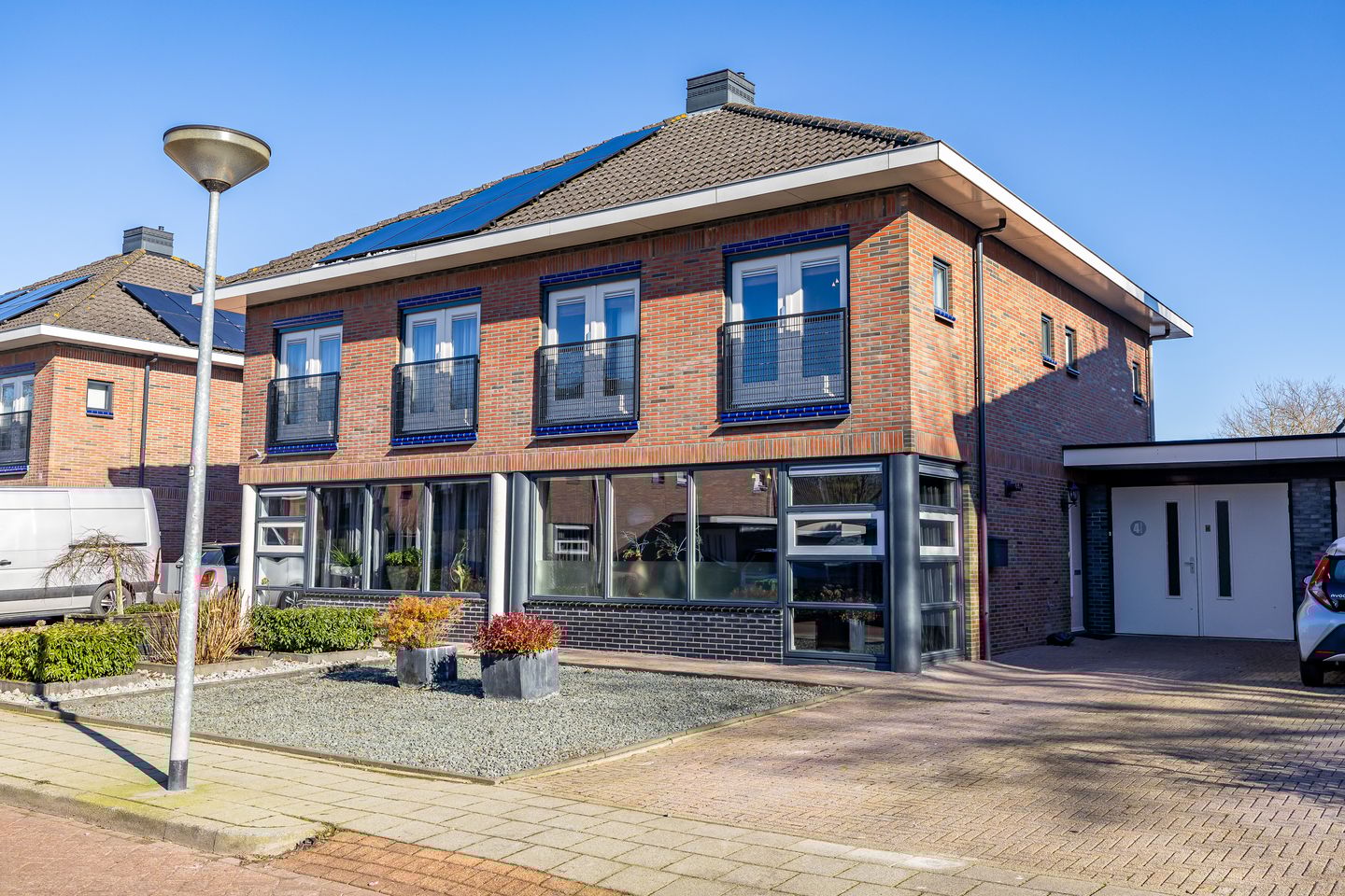 Een royale en luxe aan de achterzijde uitgebouwde twee onder één kap woning met een besloten achtertuin op het zuid/oosten.