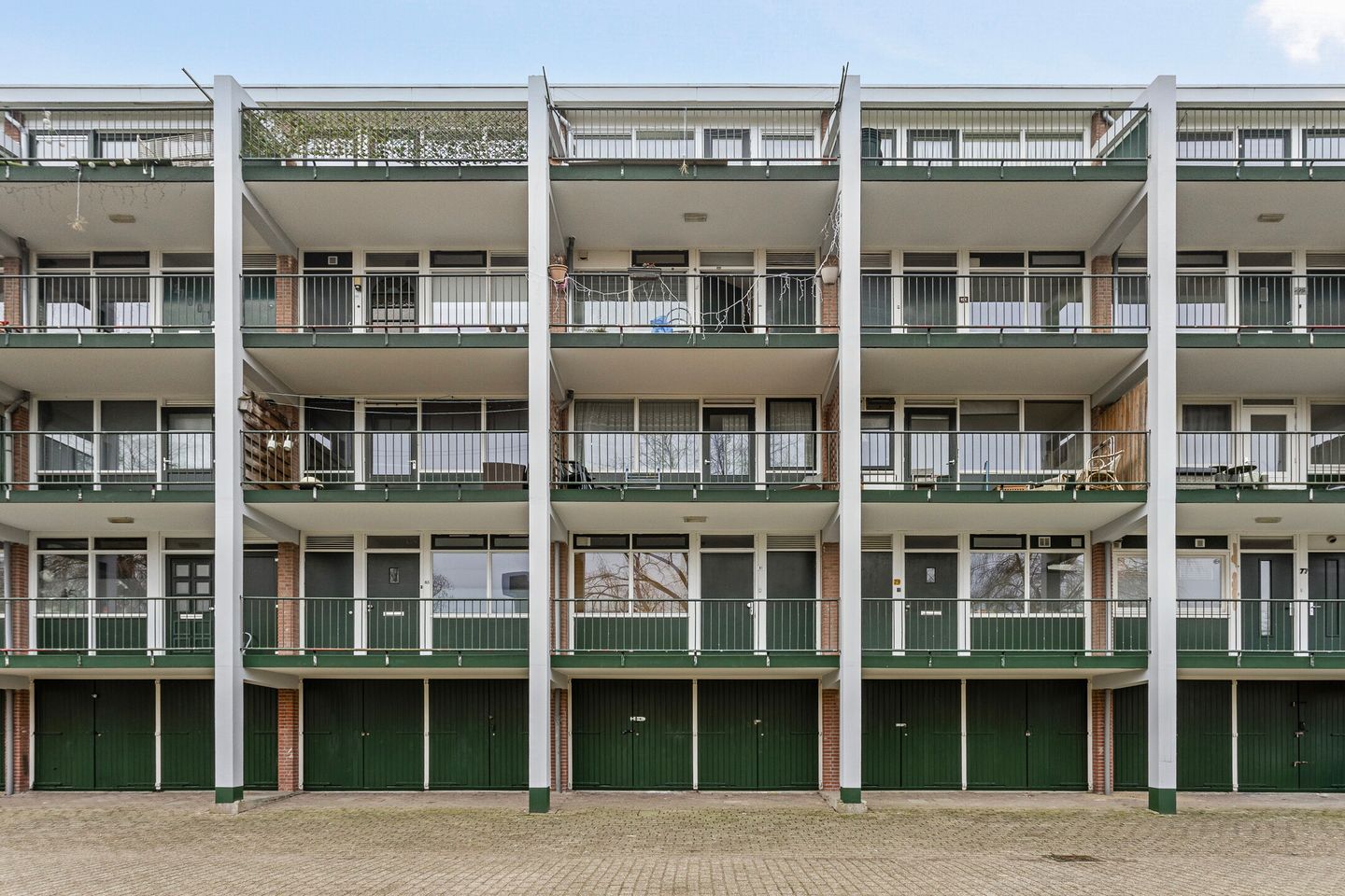 Genieten van het buitenleven kan op het overdekte balkon, dat een vrij uitzicht biedt over groen en een waterpartij. De ruimte is groot genoeg voor een zitje, perfect voor zomerse avonden. Naast het balkon beschikt de woning over een eigen garagebox en een aparte berging in de onderbouw.