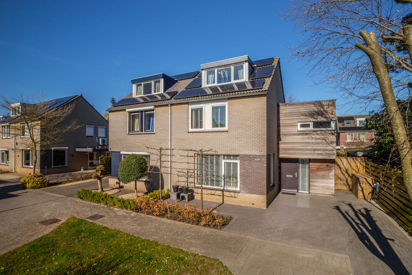 - Buitenzonwering, dakraam, glasvezelkabel, mechanische ventilatie, natuurlijke ventilatie, schuifpui, TV kabel, en zonnepanelen