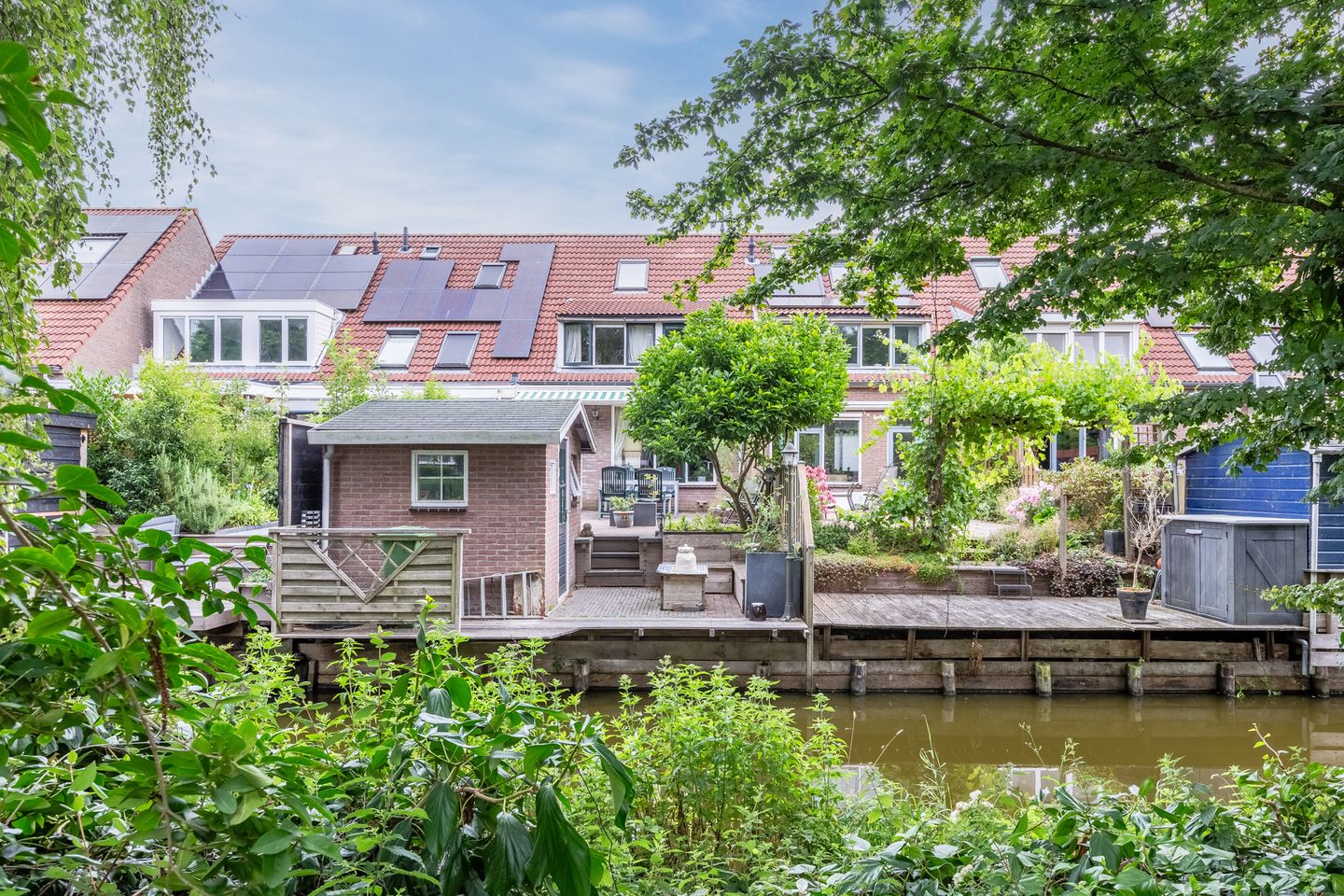 De woning heeft een betegelde voortuin met parkeergelegenheid. De diepe, beschutte en eveneens betegelde achtertuin met groene accenten, heeft een verdiept terras met loungeplek aan het water. Je kunt hier heerlijk relaxen. Je hebt hier een vrij uitzicht over water en een groene omgeving. Verder is de tuin ruim genoeg om een tweede loungeplek te realiseren en een eettafel buiten te plaatsen om gezellig buiten te eten in de zomermaanden. Aan het water staat een stenen berging met elektra.