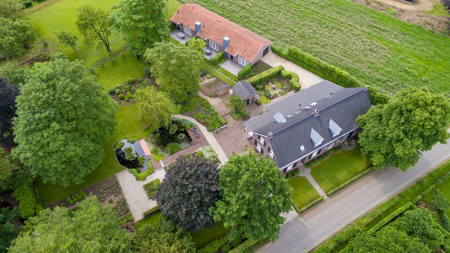 De hoofdwoning is modern van opzet met hoogwaardige afwerking, maar de authentieke sfeer van de boerderij is bewaard gebleven en wordt zichtbaar in diverse details. De ruimte en de overvloed aan natuurlijke lichtinval zorgen voor een uitnodigende en warme sfeer. Het interieur is afgewerkt met mooie materialen, die zorgen voor een tijdloze en toch moderne mix.