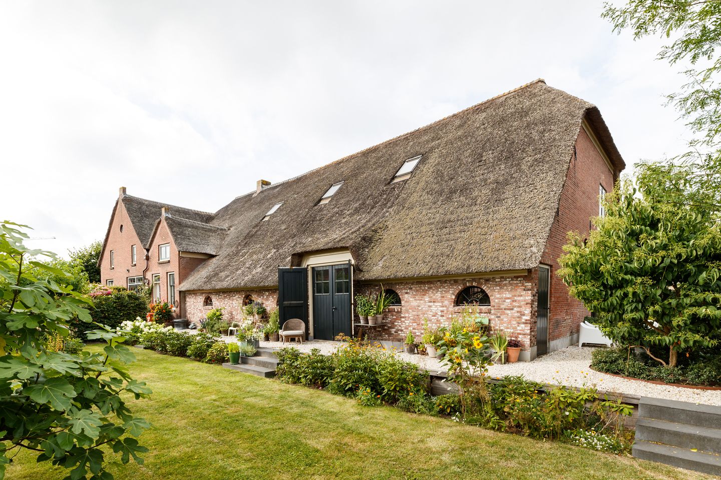 De keuken is een echte blikvanger: een moderne, royale woonkeuken met hoogwaardige inbouwapparatuur, waaronder een kookplaat met wokbrander, Quooker, grote combi-stoomoven, warmhoudlade en koel-/vriescombinatie. Dankzij de stalen pui is er een mooie doorkijk naar de aangrenzende stal en via de tweedelige deur is er directe toegang tot de tuin.