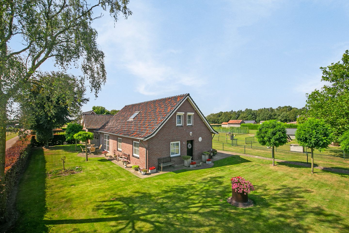 Deze vrijstaande woning biedt volop woonruimte en is op de begane grond o.a. uitgerust met een woonkamer, leefkeuken, een slaapkamer, werk/slaapkamer, badkamer, wasruimte en een toiletruimte. Op de 1e verdieping zijn nog eens 2 slaapkamers gesitueerd. Ook is er een ruime garage aanwezig. Het vrijstaande bijgebouw beschikt over een stalgedeelte met 5 paardenboxen en 2 ponyboxen. Dit bijgebouw biedt volop mogelijkheden voor bijvoorbeeld het creëren van een mantelzorgwoning. Het ruime perceel is verder ingericht met een binnenplaats, een royale, volop privacy biedende tuin met dierenweide, een buitenpiste (ca. 25x45 mtr.) en weiland.
