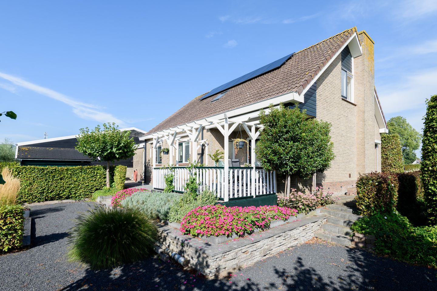 Aan de voorzijde een royale oprit met volop parkeergelegenheid op eigen terrein.