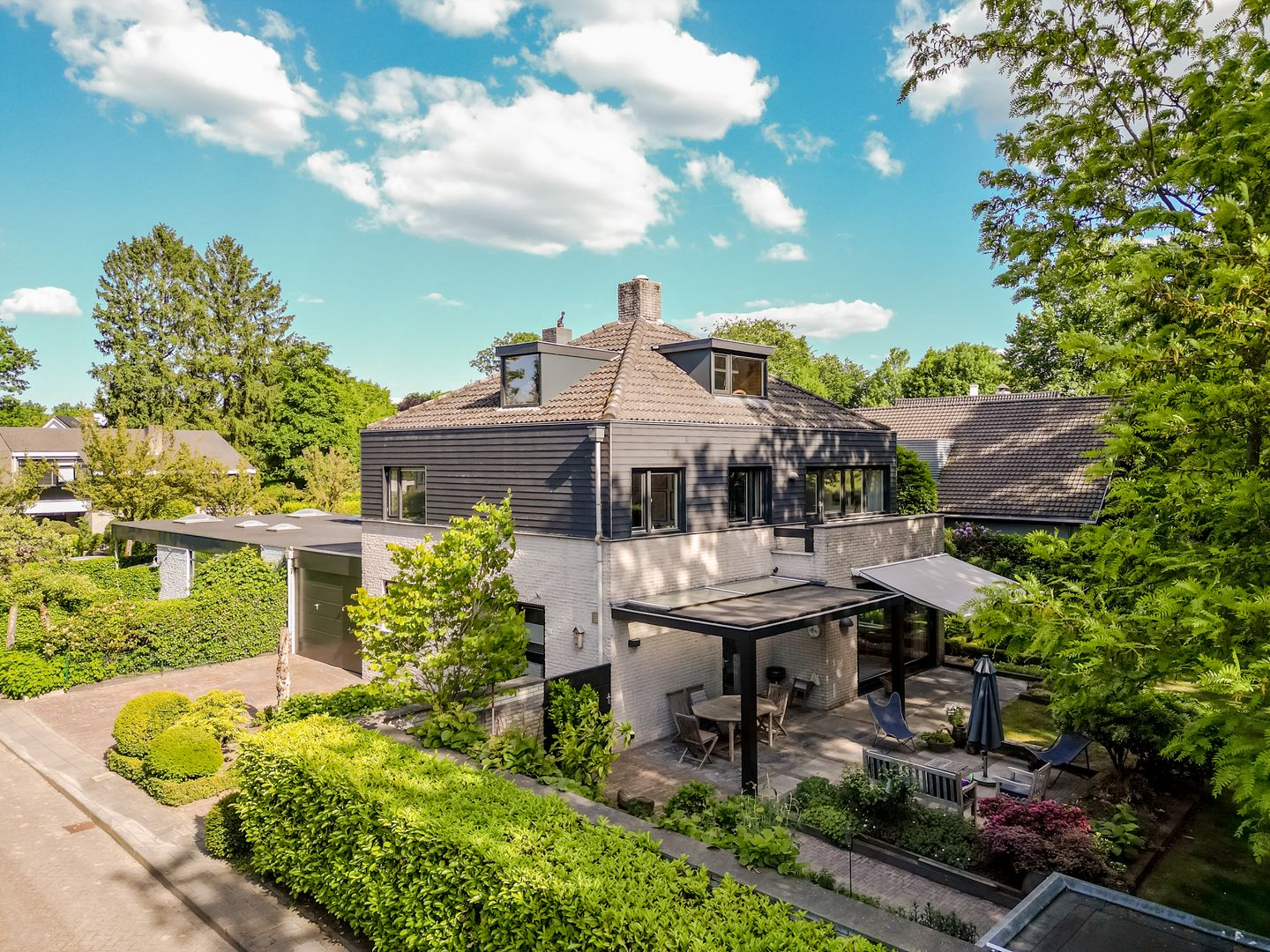 (ca. 320 m2) Middels eerdergenoemde hal en via de schuifpui in de woonkamer is er toegang tot de zeer royale en privacy biedende achtertuin. Deze achtertuin is gelegen op het zuidwesten en is grotendeels groen aangelegd. De tuin beschikt over een fijne overkapping met een lichtstraat, groot gazon, diverse borders met volwassen beplanting, een dubbele stenen berging en een eigen achterom naar de voortuin van de woning.