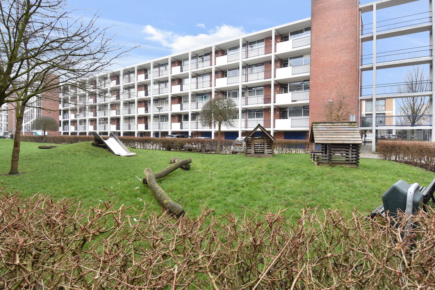 De woning is te bereiken via een afgesloten entree met brievenbussen op de begane grond. Hier ga je met de trap omhoog naar de gezamenlijke galerij of met de trap naar beneden naar de fietsenbergingen. Lopend over de galerij valt de leuke afgesloten groene binnenplaats op, waar kinderen vrij kunnen spelen. Op deze binnenplaats is er via regelmatige loting de mogelijkheid voor het huren van een eigen parkeerplek.