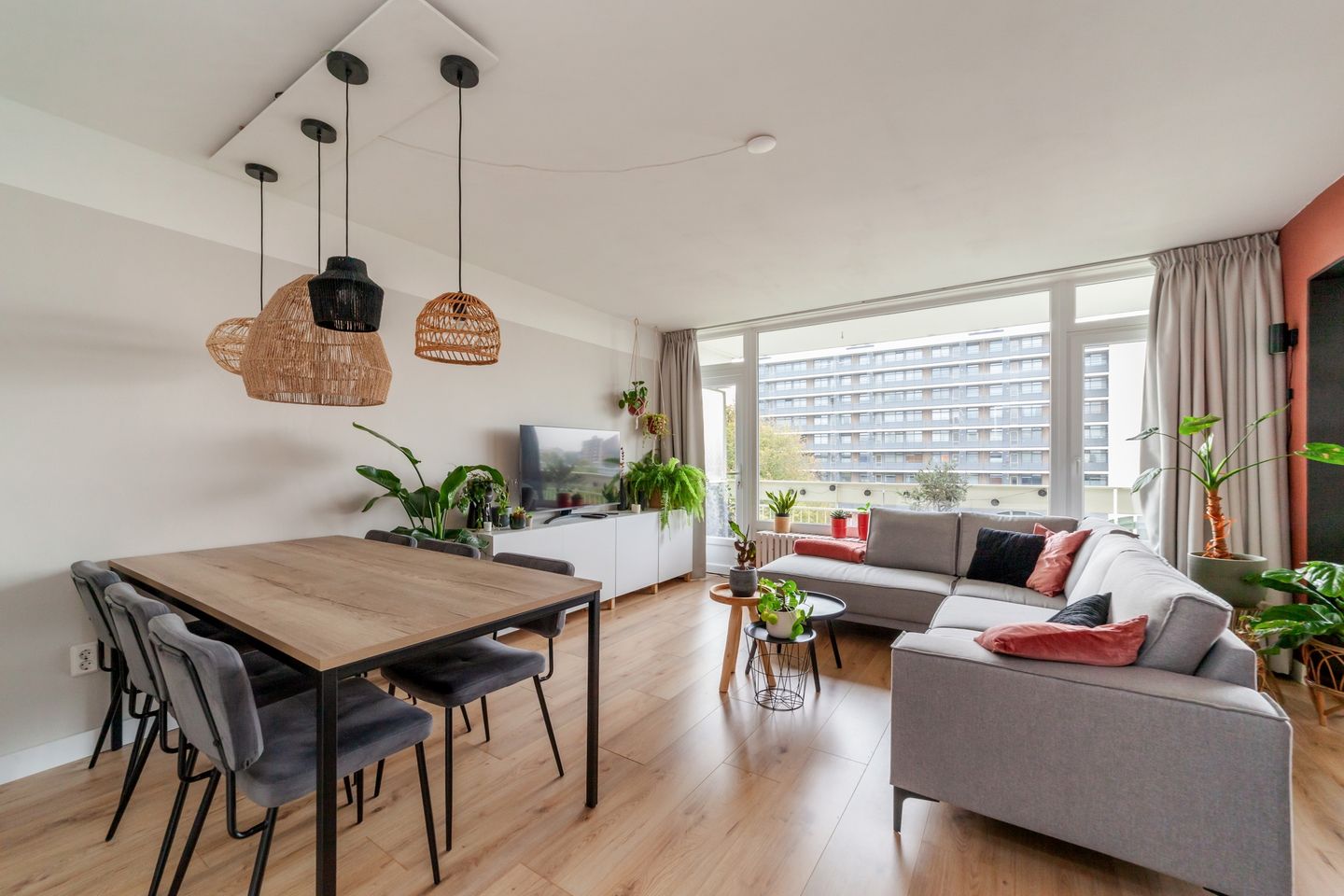 Het gehele appartement is volledig voorzien van drempelloos gelegd laminaat.