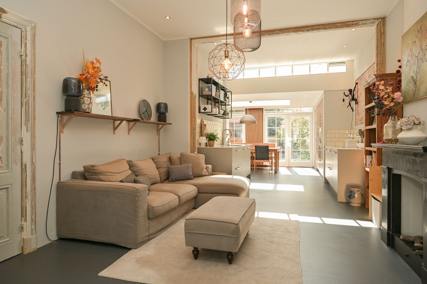 De woonkamer is licht en ruim opgezet en staat in directe verbinding met zowel de slaapkamer aan de voorzijde als de eetkamer aan de achterzijde. Dankzij de open keuken en de fijne doorloop naar de eetkamer is dit een perfecte plek om te koken.