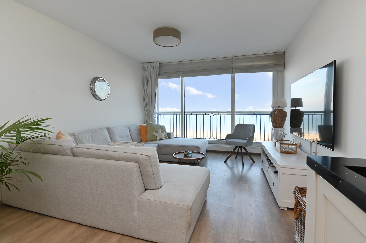 Middels een trap naar beneden kom je uit in de woon/eetkamer. Zodra je de trap afdaalt voel je door de grote glazen schuifpui een directe verbondenheid met het strand en de zee. Het vrije uitzicht over de boulevard, strand en zee is gewoonweg fantastisch. De woonkamer is voorzien van vloerverwarming met daarboven een laminaatvloer. Via de schuifpui heb je toegang tot het zeembalkon aan de voorzijde. De luxe open keuken is voorzien van oven, inductie kookplaat, afzuigkap, vaatwasser en een koel/vries combinatie. Via een af te sluiten tussen gang kom je terecht in het privé gedeelte van de woning bestaande uit een wasruimte, bergkast, een modern zwevend toilet met fontein en een moderne badkamer voorzien van een douchecabine en wastafelmeubel met dubbele kranen. De ruime en lichte achtergelegen slaapkamer is voorzien van vloerverwarming en biedt door middel van een schuifpui toegang tot het achtergelegen balkon. Het balkon is ruim en heeft door zijn ligging op het zuidoosten een groot gedeelte van de dag zon.