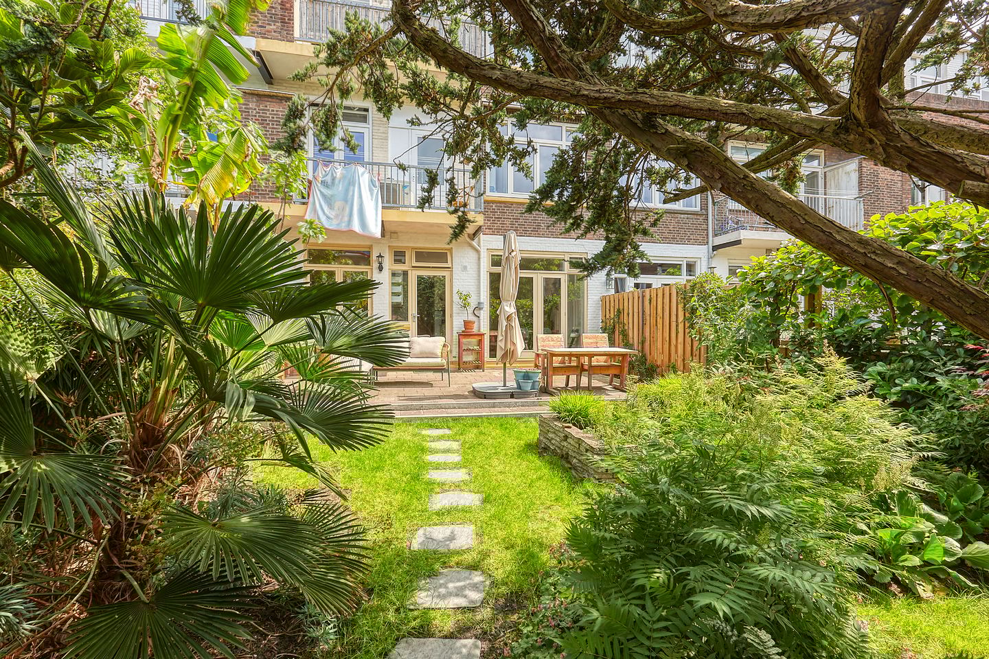 Vanbuiten valt de kenmerkende architectuur op door de erkers aan de voorzijde en de symmetrie van de voorgevel met een prachtig open portiek voorzien van glas-in-lood raampjes. In het open typerend Haagse portiek bevindt zich de voordeur van de woning op de begane grond. Entree appartement. Hal met vaste kast waar zich tevens de wasmachine aansluiting bevindt en de meterkast. Losse toiletruime met fontein. De woonkamer is heel sfeervol mede dankzij de marmeren schouw aan de voorzijde, de erker en de schuifseparatie met schuifdeuren en vaste kasten. In totaal is de woonkamer ruim 12 meter diep en 3,4 meter breed met een plafondhoogte van 2,8 meter. De achterkamer heeft openslaande deuren naar de achtertuin. De tuin is op het zuidwesten gelegen en daarmee is de woning niet alleen heel licht, maar is er in de achtertuin nagenoeg de hele dag zon! De achtertuin is indrukwekkend groot en sfeervol ingedeeld met leuk terras en veel groen. De keuken is in 2024 grotendeels vernieuwd en beschikt over een keukenopstelling aan weerszijde met de gebruikelijke inbouwapparatuur en veel werk- en opbergruimte. Het appartement beschikt over 2 slaapkamers. De slaapkamer aan de voorzijde is ca. 3,2 x 2,4 meter en de slaapkamer aan de achterzijde ca. 4,2 x 2,1 m. De badkamer is beknopt doch functioneel en deze beschikt over een douche en wastafel.