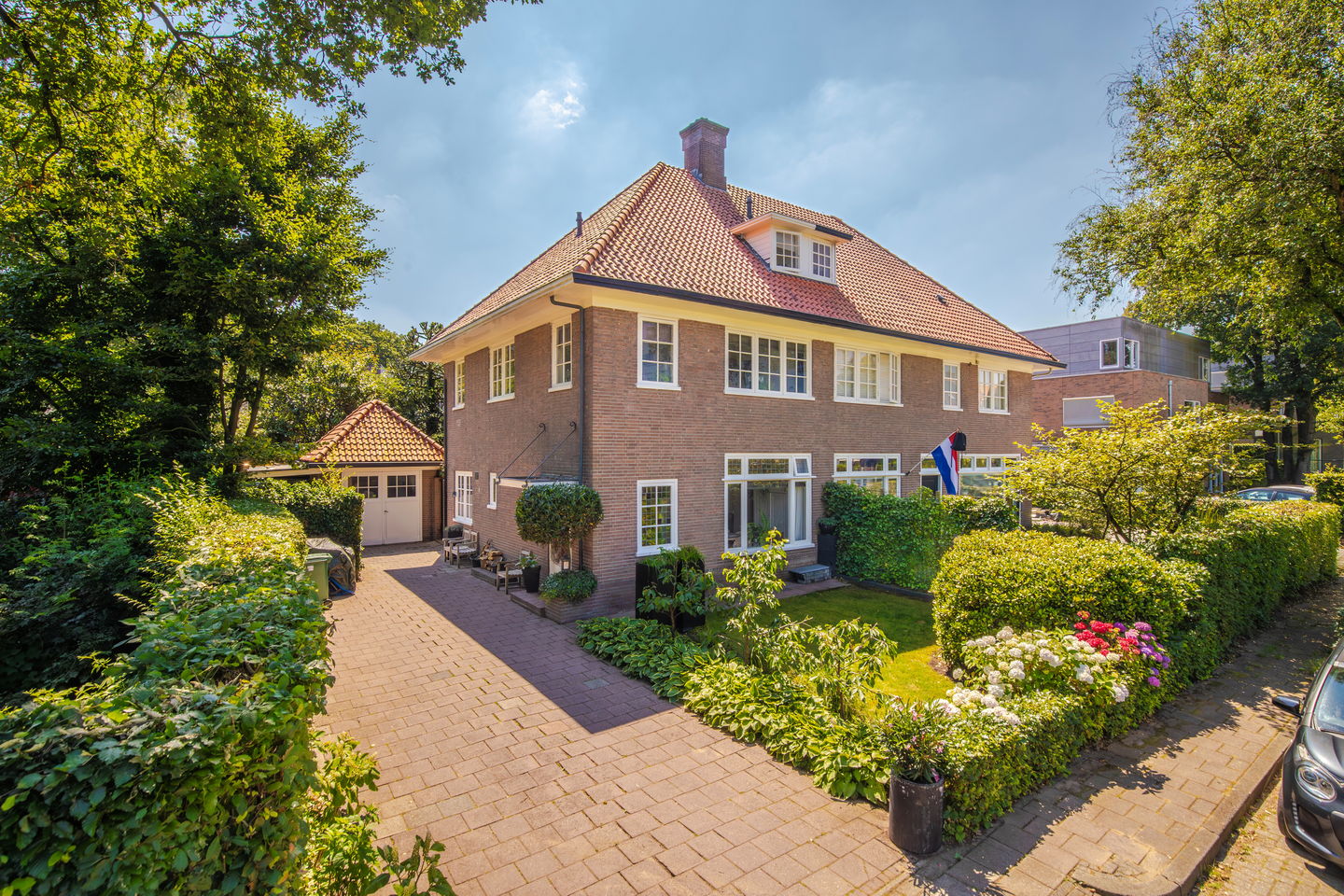 De woning heeft een diepe verzorgde voortuin met oprit, die leidt naar de ruime vrijstaande stenen garage in dezelfde jaren ’30-stijl. Tevens voorzien van een bergzolder. Via een poort kom je in de achtertuin, waar je volop kunt genieten van het buitenleven. De tuin gelegen op het zuiden biedt privacy en ruimte voor allerlei activiteiten, zoals barbecueën of ontspannen in de hottub. Er is tevens een tuinhuis en een overkapte veranda aan de garage, die de tuin compleet maken. De hottub wordt ter overname aangeboden.