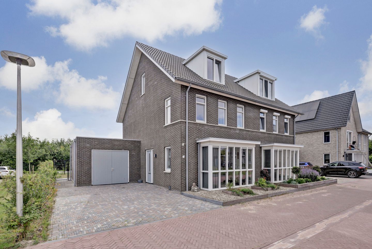 Voor de woning ligt een brede oprit met plek voor meerdere auto’s en toegang tot de extra ruime garage. Via een pad langs de garage loop je naar de achtertuin. Deze is strak aangelegd met een groot terras, perfect voor lange zomeravonden of een barbecue met vrienden. Het gazon biedt nog volop mogelijkheden om de tuin naar eigen smaak in te richten. Dankzij de ligging aan openbaar groen geniet je hier van privacy en een heerlijk vrij uitzicht.