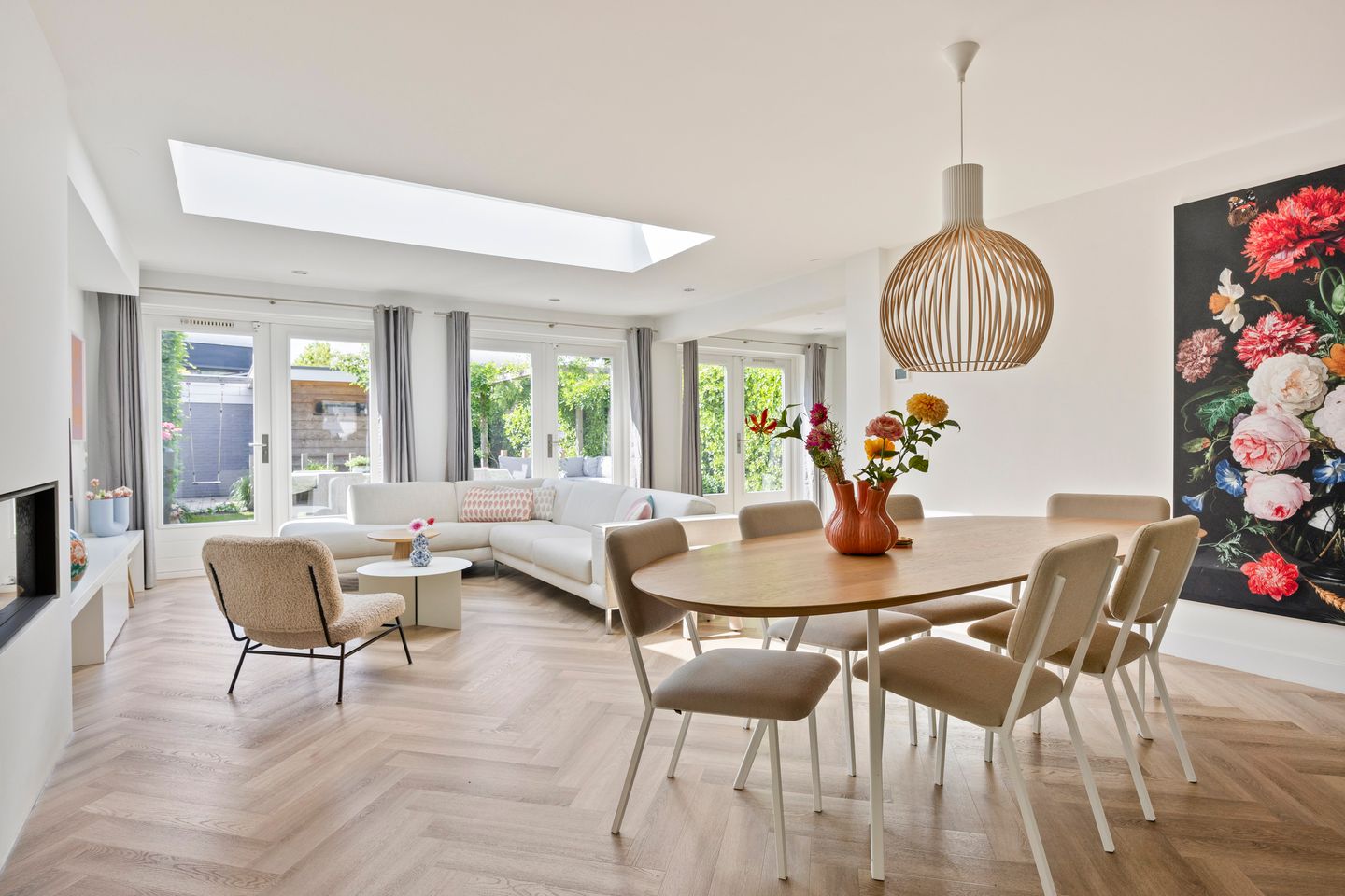 Parkeer je auto op de eigen oprit en betreed de woning via de voordeur. In de entreehal vind je het toilet, de meterkast, trap naar boven, trapkast en toegang tot de lichte woonkamer. De woonkamer is een echte eyecatcher met grote raampartijen en een stijlvolle lichtstraat in het dak. Dankzij de drie dubbele tuindeuren loopt binnen naadloos over in buiten – perfect voor zomerse dagen. De gezellige gashaard uit 2019 zorgt voor extra sfeer tijdens de koudere maanden. Aan de voorzijde van de woning vind je de moderne open keuken, compleet met oven, combimagnetron, koelkast, vaatwasser, Quooker en gaskookplaat. De keuken is ook ruim genoeg voor het plaatsen van een eettafel. Tot slot treffen we op de begane grond nog een multifunctionele ruimte, momenteel in gebruik als bijkeuken. Deze ruimte is voorzien van inbouwkasten en ruimte voor een extra koelkast en vriezer, maar kan ook dienen als slaapkamer, kantoor, praktijk of speelkamer. Deze ruimte heeft ook een eigen voordeur.
