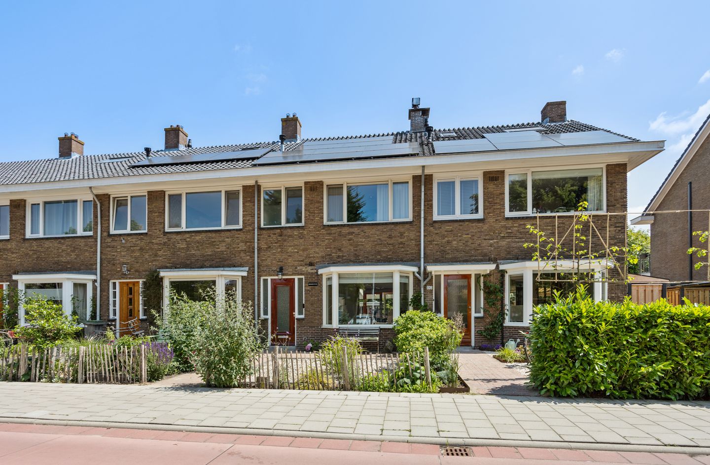 De voortuin is verzorgd en beschikt over net tegelwerk, siergrind en een gunstige zonligging. In de namiddag tot zonsondergang is het hier heerlijk genieten van een kop koffie of thee in het zonnetje.