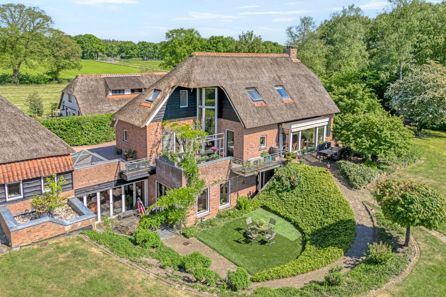 De woning is gelegen op een royaal perceel van maar liefst 8.320 m², met volop ruimte, privacy en groen. Rondom de woning zijn diverse sfeervolle zitplekken gecreëerd, waaronder twee ruime terrassen en een overkapping in de tuin. De fraai aangelegde tuin beschikt over een grote vijver en een eigen zonnepark. Achter de woning bevindt zich een vrijstaande garage, waar tevens de autolift is gesitueerd – perfect voor autoliefhebbers of extra opslagruimte.