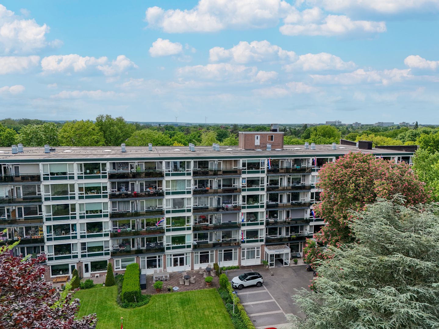 Wat een fijne plek om gelijkvloers te wonen, nabij het centrum en het bos. De Sparrenhof was vroeger een serviceflat, en nu is het een geliefd appartementencomplex met een prachtige tuin, goede parkeervoorzieningen en een gemeenschappelijke huiskamer. Dit goed ingedeelde appartement van circa 71 m2 bevindt zich aan de achterzijde, op de vierde verdieping met een balkon op het zonnige westen. Het appartement is goed onderhouden, waardoor verbouwen niet noodzakelijk is.