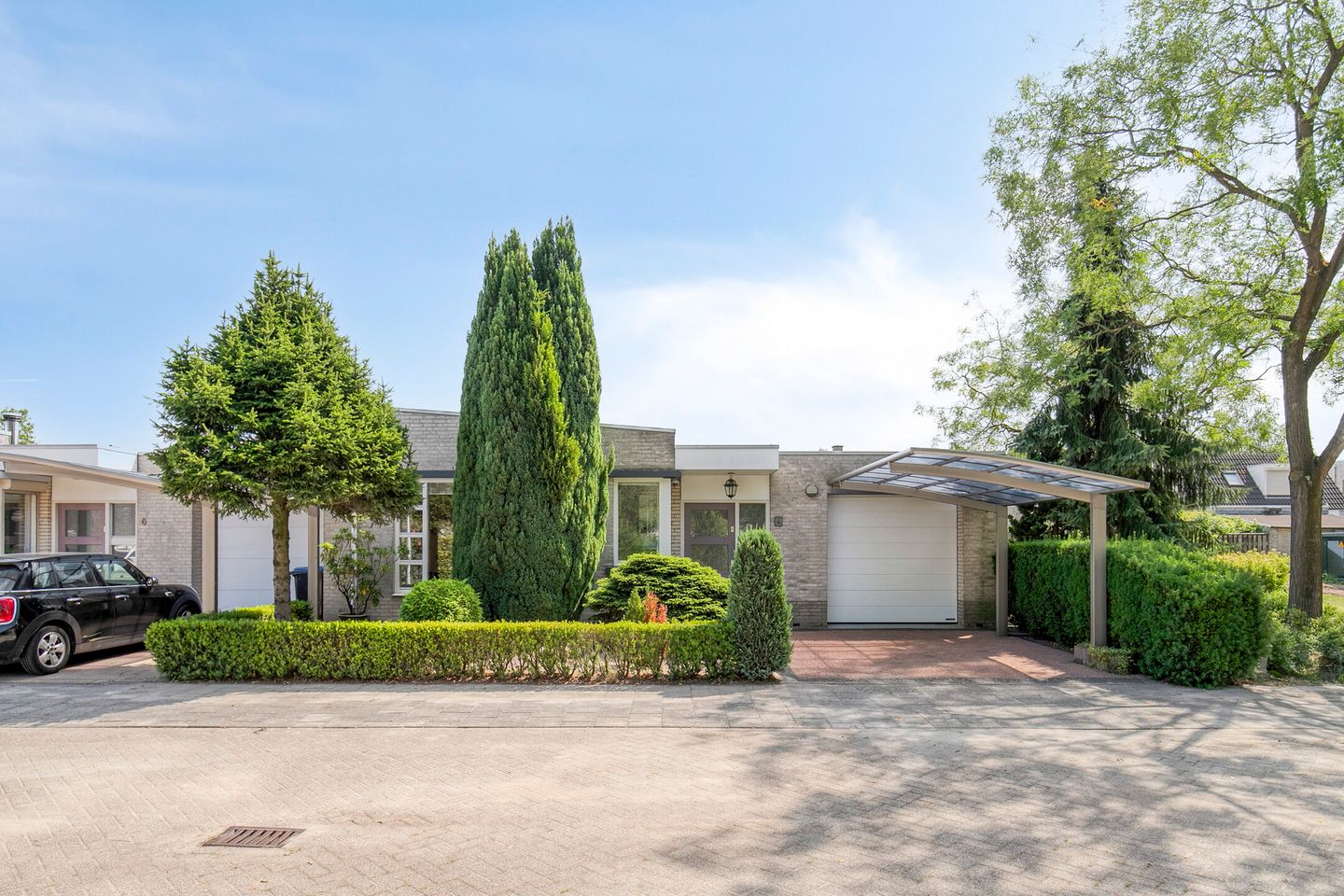 De woning beschikt over een inpandige berging met aansluiting voor de wasmachine en opstelling van de cv-ketel (Vaillant, bouwjaar 2016). De inpandige garage is royaal en voorzien van een elektrische sectionaaldeur, waterkraan en ruimte voor zowel een auto als fietsen. Buiten vindt u een bestrate oprit met carport, waar u makkelijk kunt parkeren.