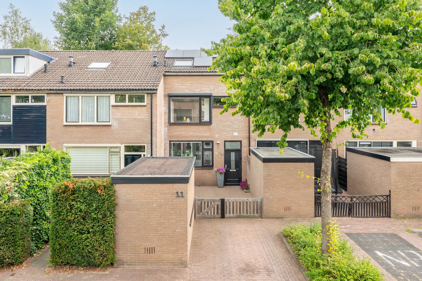 Warme zomerse avonden – lekker de glazen schuifwanden open! Koude lenteavond? Dan laat u de wand gewoon dicht. Oftewel; een plekje om gedurende het gehele jaar lekker te genieten! Wat ook meteen opvalt in de achtertuin is de vrije ligging. U kijkt hier mooi weg over de volgroeide bomenrijen. Leuk detail is het doorloopje aan de achterkant naar het speelveldje. De kids hebben de speeltuin gewoon achter in de tuin liggen!