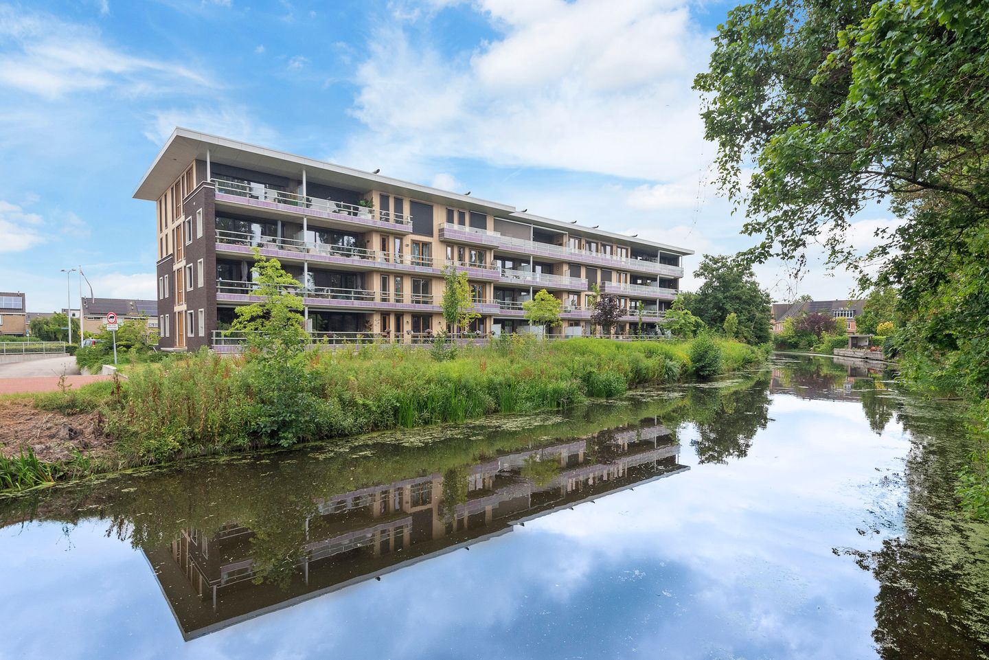 Vanuit de woonkamer stapt u zo uw eigen balkon op, een absolute eyecatcher van dit appartement. Hier geniet u de middagzon én van een verbluffend panoramisch uitzicht over de waterrijke en weelderig groene omgeving. Of u nu in alle rust een boek leest, dineert met vrienden of gewoonweg even de stilte opzoekt: het uitzicht is werkelijk adembenemend. Een plek waar buitenleven, comfort en natuur samenkomen.