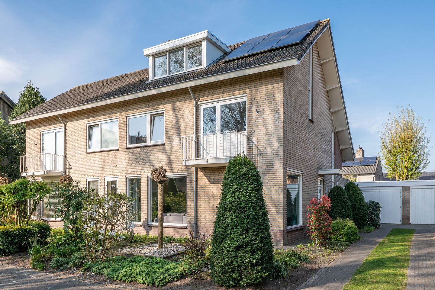 De voortuin is verzorgd aangelegd met diverse beplanting. Aan de rechterzijde van de woning bevindt zich de riante opgang naar de garage. Tevens is vanuit hier middels een poort de achtertuin te bereiken.