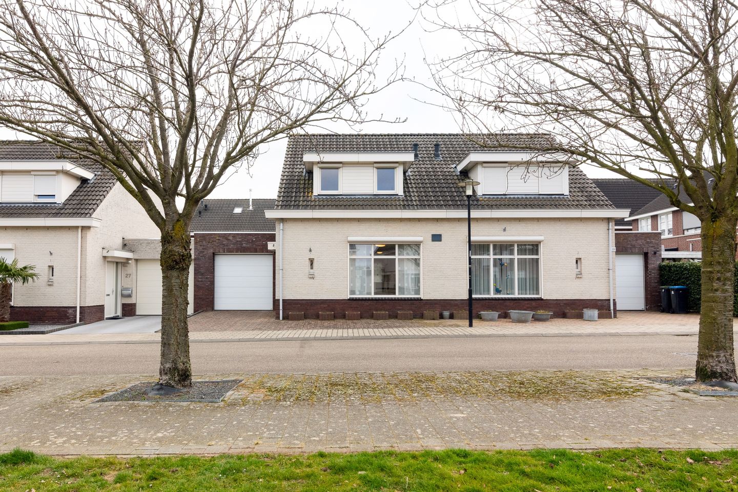 Bij aankomst wordt u verwelkomd door een nette, onderhoudsvriendelijke voortuin met een oprit die leidt naar de inpandige garage en de entree van de woning.