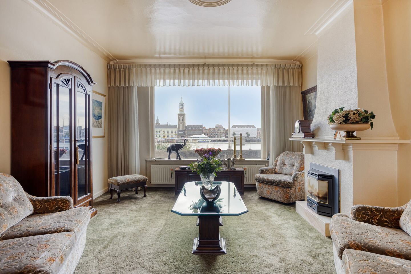 Aan de voorzijde stap je binnen in de entree met hal en toiletruimte. De royale woonkamer ligt aan de IJsselzijde en biedt een fantastisch uitzicht over de rivier en de historische binnenstad. Voor de sfeer is er een gashaard aanwezig. Via de woonkamer kom je in de eetkamer aan de achterzijde, grenzend aan de open keuken. Vanuit zowel de keuken als via de openslaande deuren in de eetkamer stap je zo het balkon op. Hier kun je heerlijk genieten van de ochtendzon.