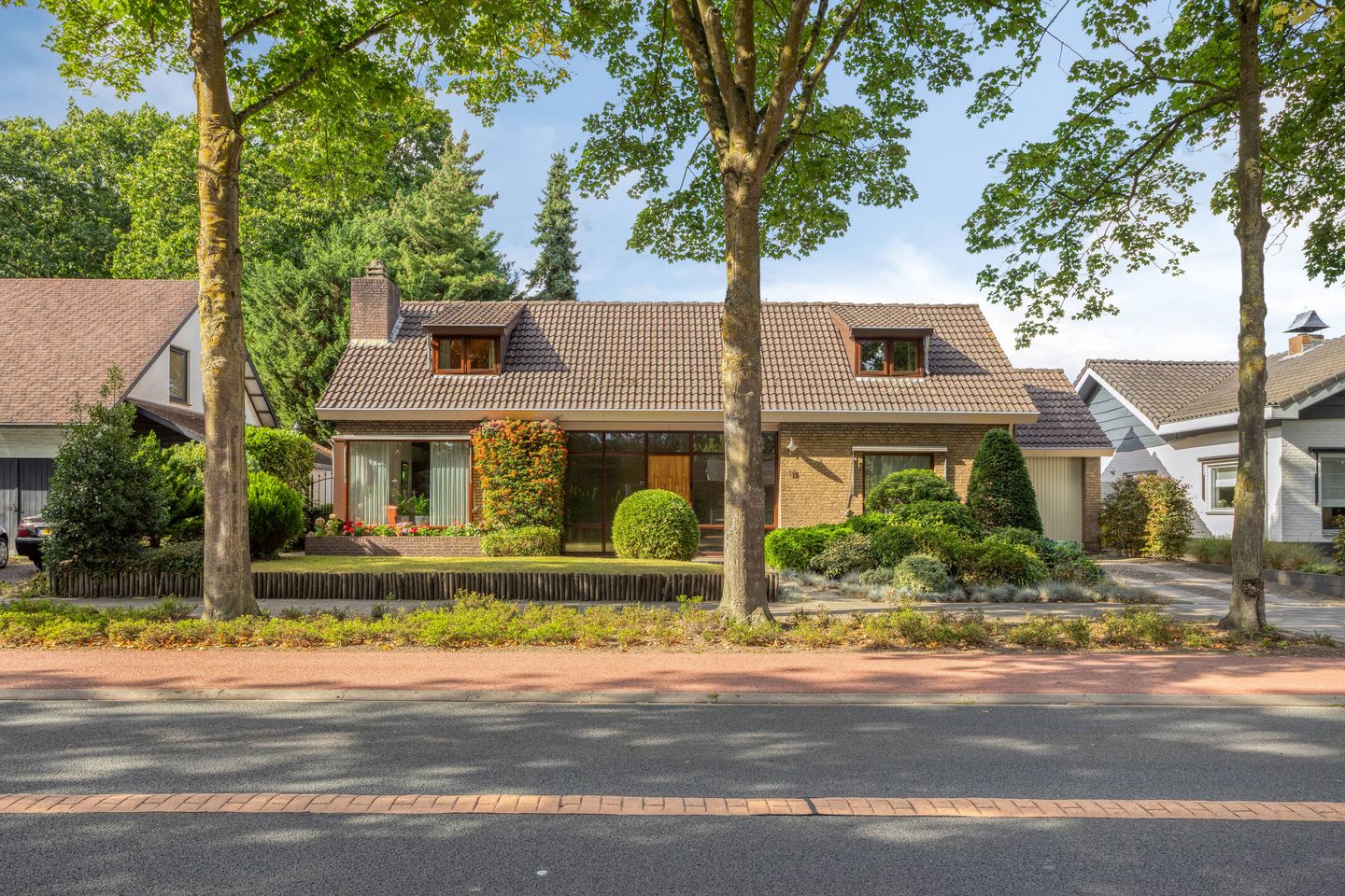 De achtertuin is gelegen op het noorden en biedt voldoende ruimte voor zon én schaduw. De garage beschikt over een smeerput, opbergzolder en is voorzien van elektra. Hier is ook de unit heteluchtverwarming (’72) geplaatst. Daarnaast is er een oprit met parkeergelegenheid op eigen terrein.