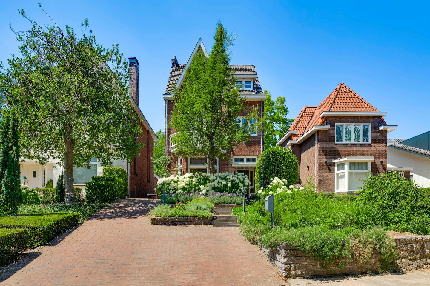 Vanaf de Kuileneindestraat kijkt u naar een diepe, mooi aangelegde voortuin en de oprit. Er is parkeergelegenheid voor meerdere auto’s, zowel voor als naast de woning. Staat de auto geparkeerd, loop dan via de buitentrap naar de overdekte entree. Hier ziet u glas-in loodramen, een mooie voordeur en een bordes met originele vloertegels.