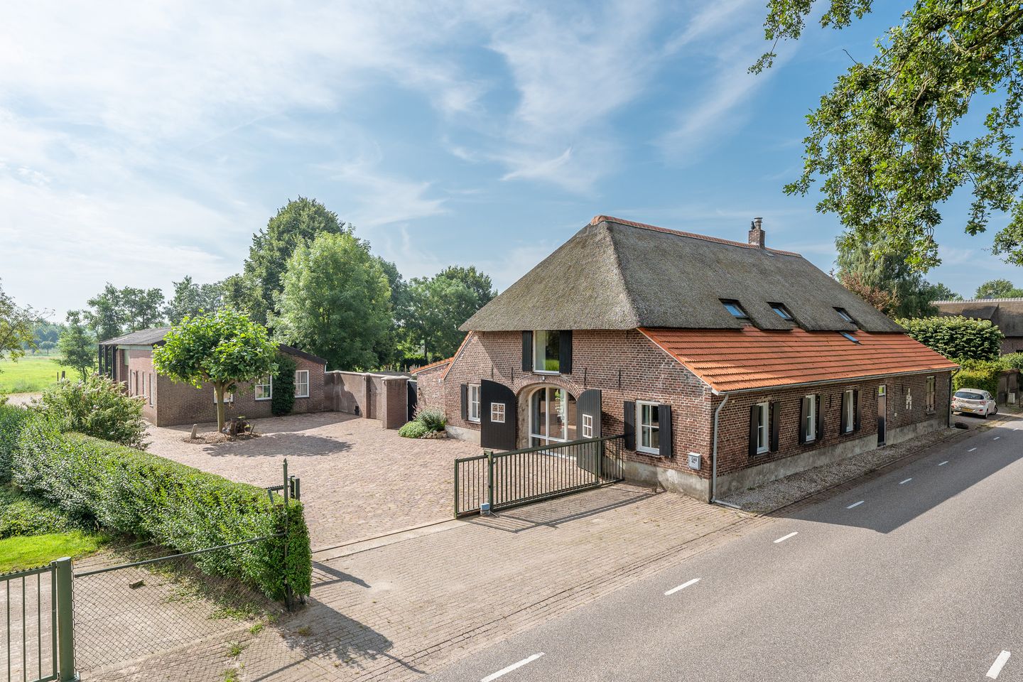 Fraai verbouwde half vrijstaande woonboerderij waarbij vele authentieke details bewaard zijn gebleven. Met parkachtige tuin en royale vrijstaande loods met kantoor. Met aansluitend weiland.