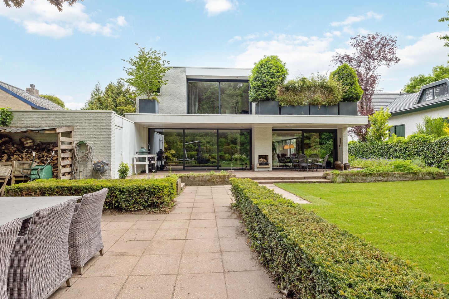 De prachtige en onder architectuur aangelegde achtertuin (ca. 20.5 x 18.0m) is gelegen op het westnoordwesten waardoor hier volop van de middag- en avondzon kan worden genoten. De tuin beschikt over een deels overdekt terras met open haard en diverse plafondspots tegen de achtergevel, speelse niveauverschillen, een heerlijk terras aan de achterzijde, gazon, een automatische beregeningsinstallatie, borders met een variëteit aan beplanting en een prachtige omringende volwassen bomenstand. Met de mooie natuur rondom biedt de tuin naast een oase aan groen ook volop privacy en bijna het gevoel dat je in het bos woont.
