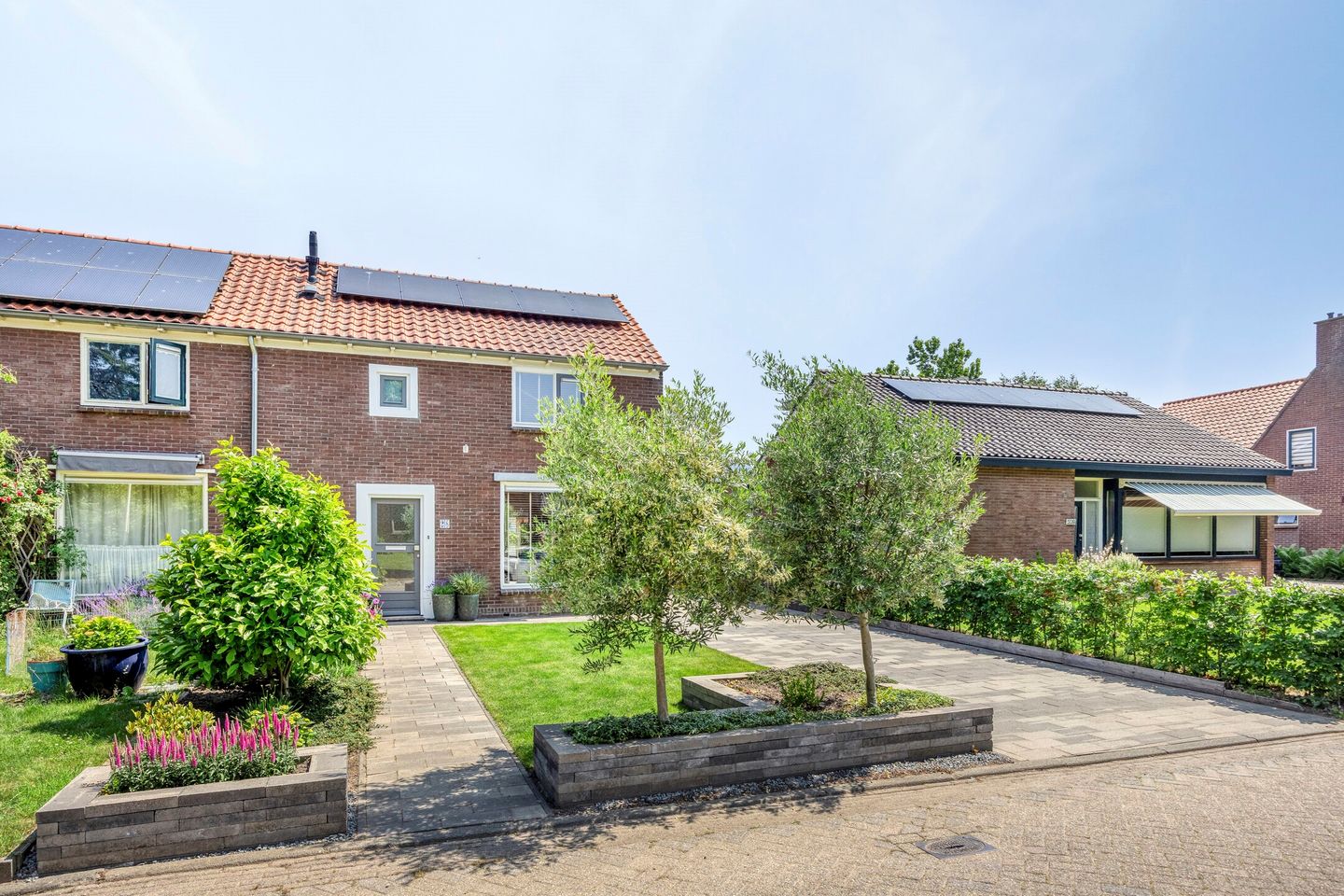 De woning heeft een royale oprit voor meerdere auto’s en een vrijstaande stenen garage. De diepe, zonnige achtertuin is fraai aangelegd en biedt volop privacy.