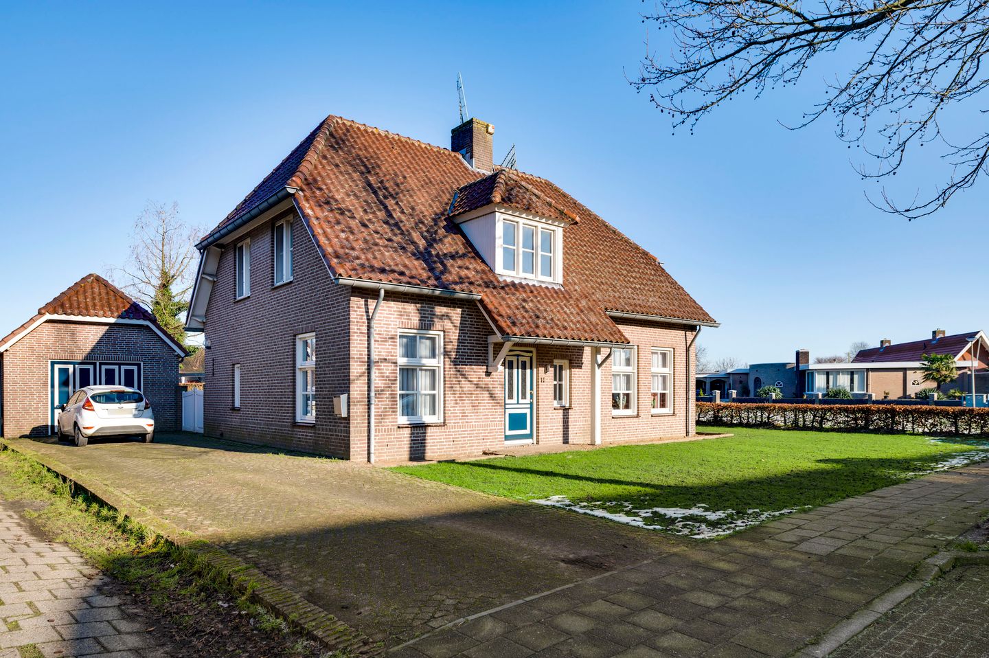 Vrijstaande garage en oprit