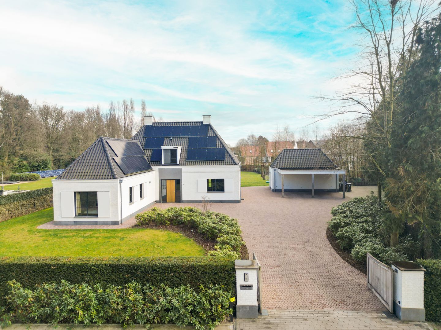 Naast de villa bevindt zich een volledig geïsoleerd bijgebouw, dat dankzij de praktische indeling en hoogwaardige afwerking talloze mogelijkheden biedt. Met direct daglicht, voldoende bergruimte is deze ruimte perfect te gebruiken als werkruimte, atelier of hobbyruimte. Dit bijgebouw is voorzien van krachtstroom, een extra toilet, vliering en een carport voor twee auto’s.