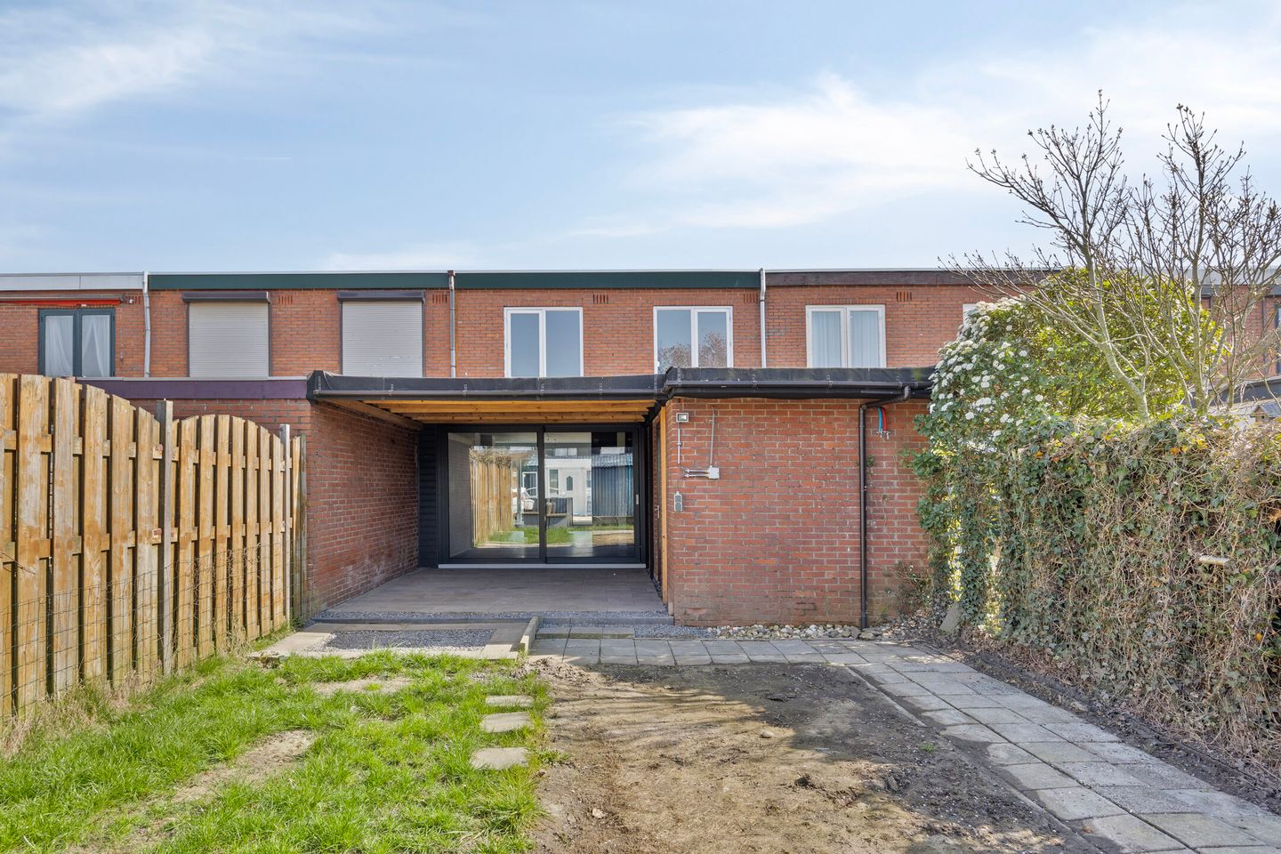 De achtertuin is gelegen op het zuidwesten en heeft een achterom. Naast de overkapping is aan de achterzijde een overkapping/berging waarin voldoende ruimte is voor het stallen van fietsen en andere spullen.