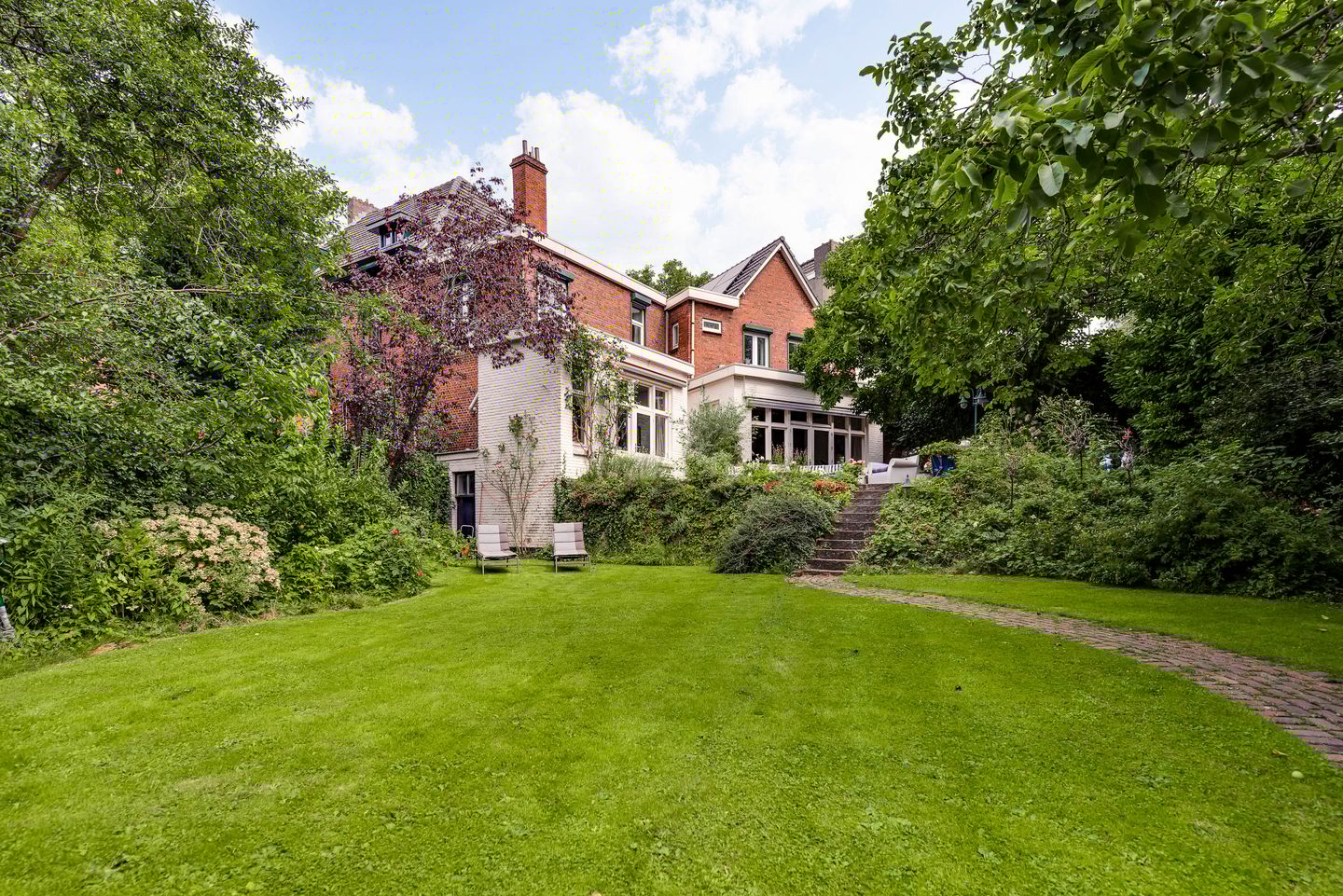 Slechts de achtergevel verraadt de omvang van het huis. Met een tuin van maar liefst ca. 630 m² (je leest het goed: 630!) omring door groen voel je je vogelvrij in het midden van de stad.