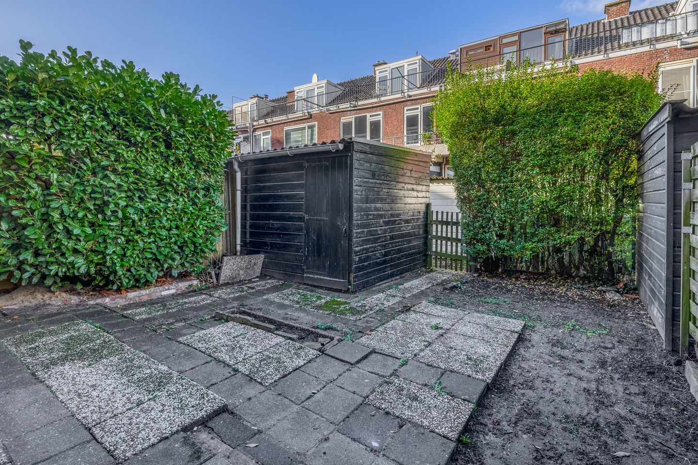 De achtertuin van circa 55 m² op het westen is werkelijk een parel van deze woning. Hier vang je de zonnestralen in de namiddag, organiseer je gezellige barbecues met vrienden of creëer je een groene oase helemaal naar eigen smaak. Of je nu houdt van een kleurrijke bloemenpracht, een moestuintje of gewoon een plek om rustig een boek te lezen: deze tuin geeft je de ruimte en rust die je in de stad bijna nergens vindt.