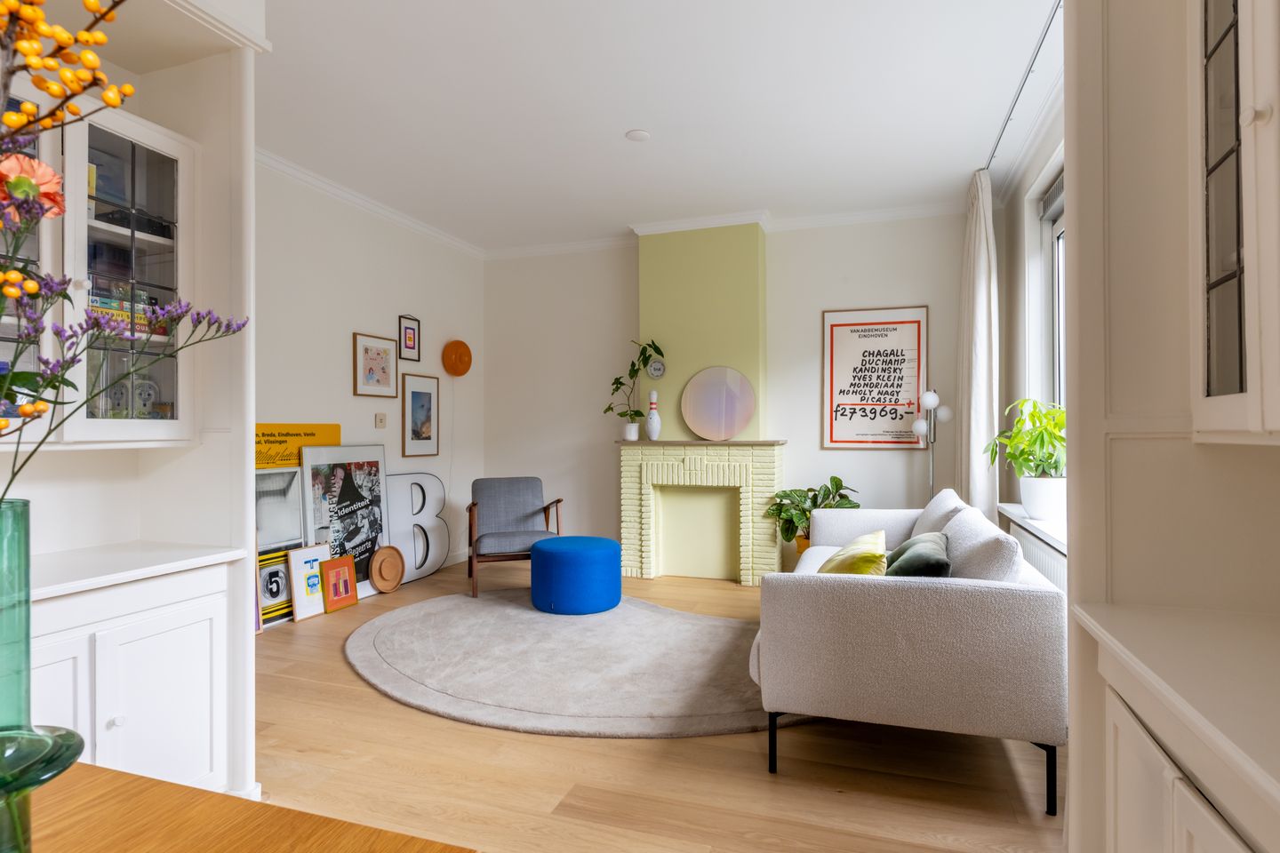 Je komt binnen in een ruime hal die toegang geeft tot alle vertrekken. De royale, lichte woonkamer beslaat de volledige voorzijde en voelt door de strakke afwerking en het eiken lamelparket warm en ruimtelijk aan. Perfect voor een comfortabele zithoek en grote eettafel.