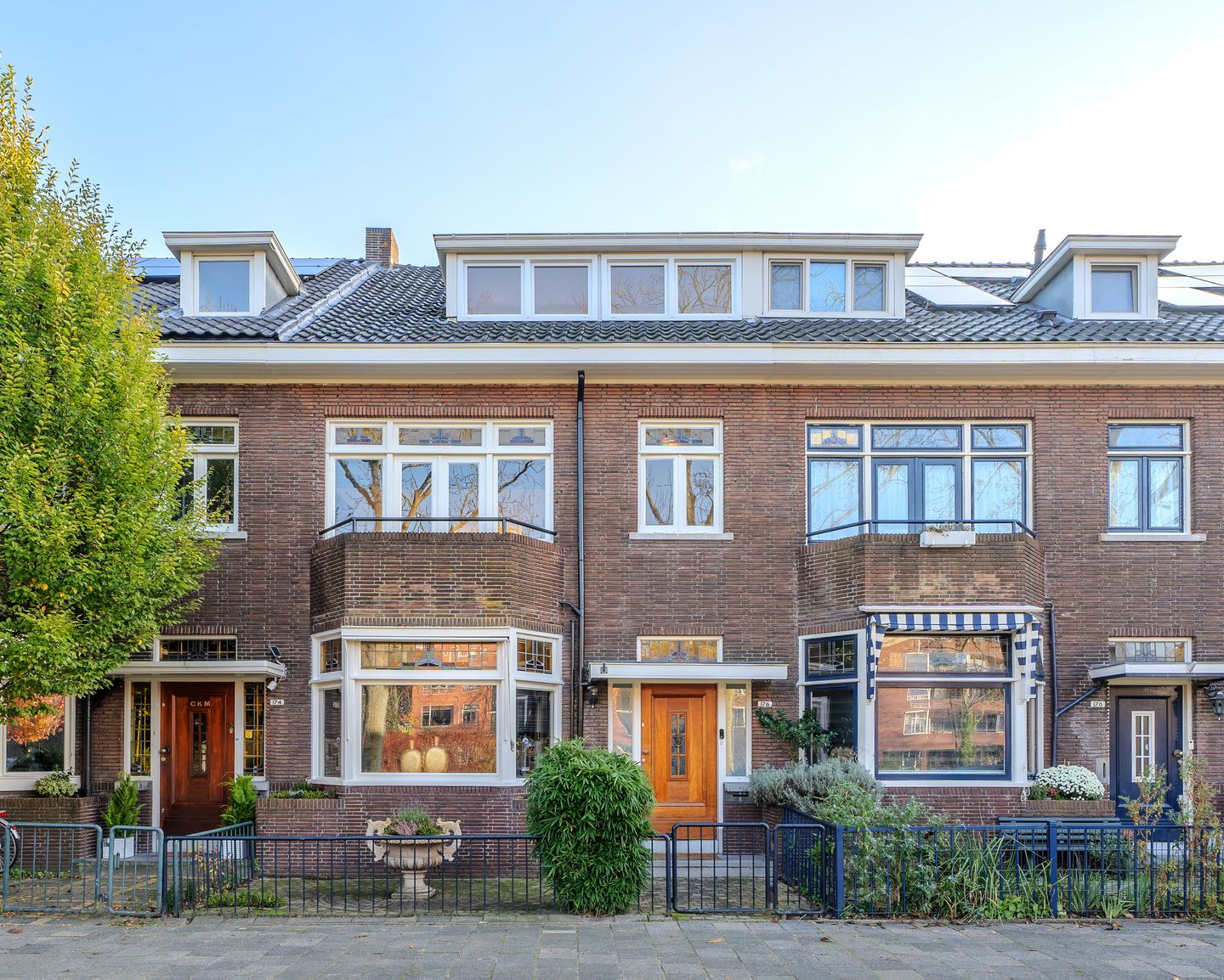 Via de keuken of woonkamer stap je op de veranda, voorzien van onderhoudsvriendelijke composiet vlonders en een elektrisch zonnescherm. De achtertuin is groen, beschut en sfeervol. Het achterpad is alleen toegankelijk voor bewoners – ideaal voor fietsen en extra veilig.