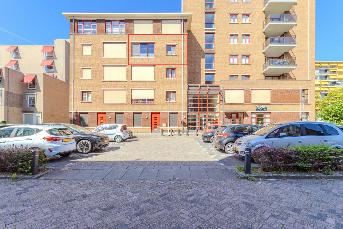 De toegang tot het appartementencomplex vindt plaats in de keurige centrale entree voorzien van elektrisch bedienbare deuren, bellentableau en brievenbussen. Afgesloten trappenhuis en liftinstallatie. Aan de achterzijde van het complex bevinden zich de berging en de binnenplaats met privé parkeerplek.